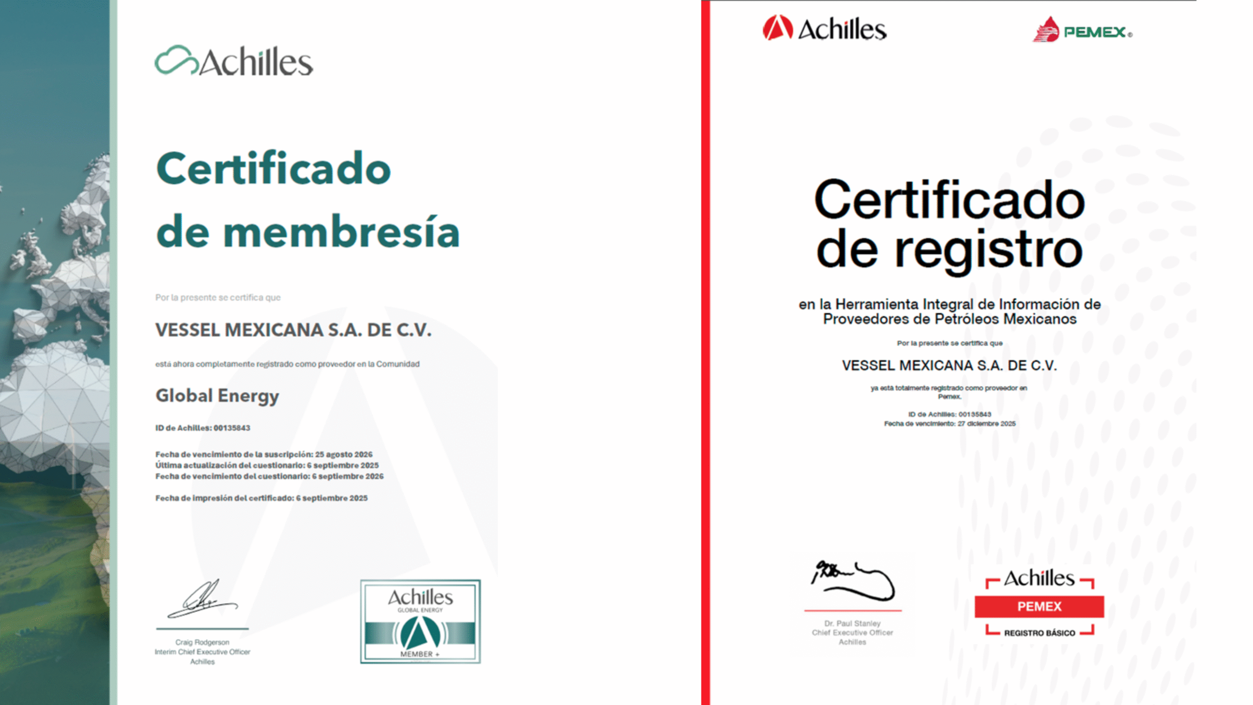 VESSEL MEXICANA ACREDITADA CON LA CERTIFICACIÓN ACHILLES